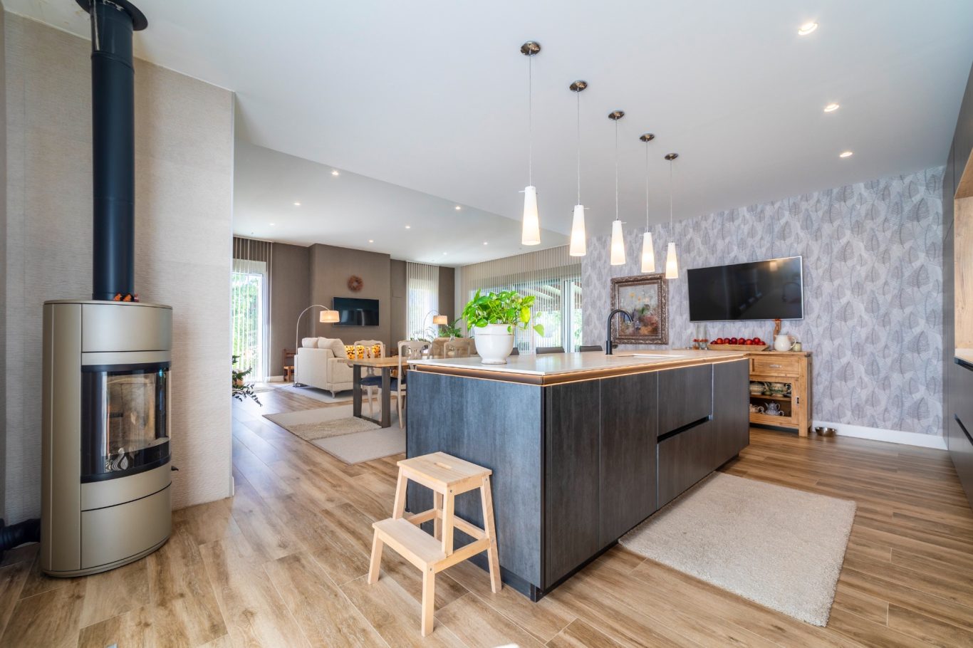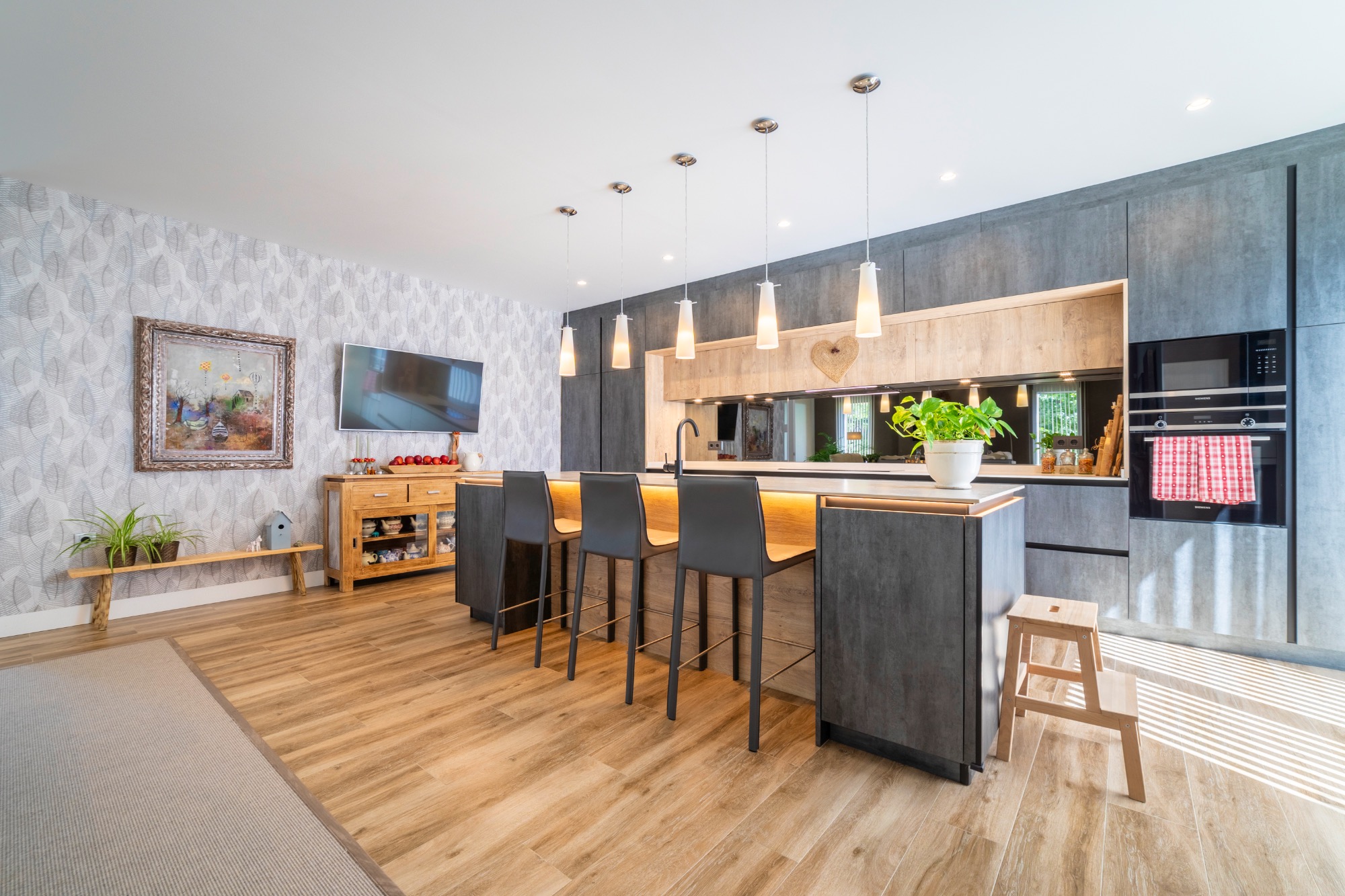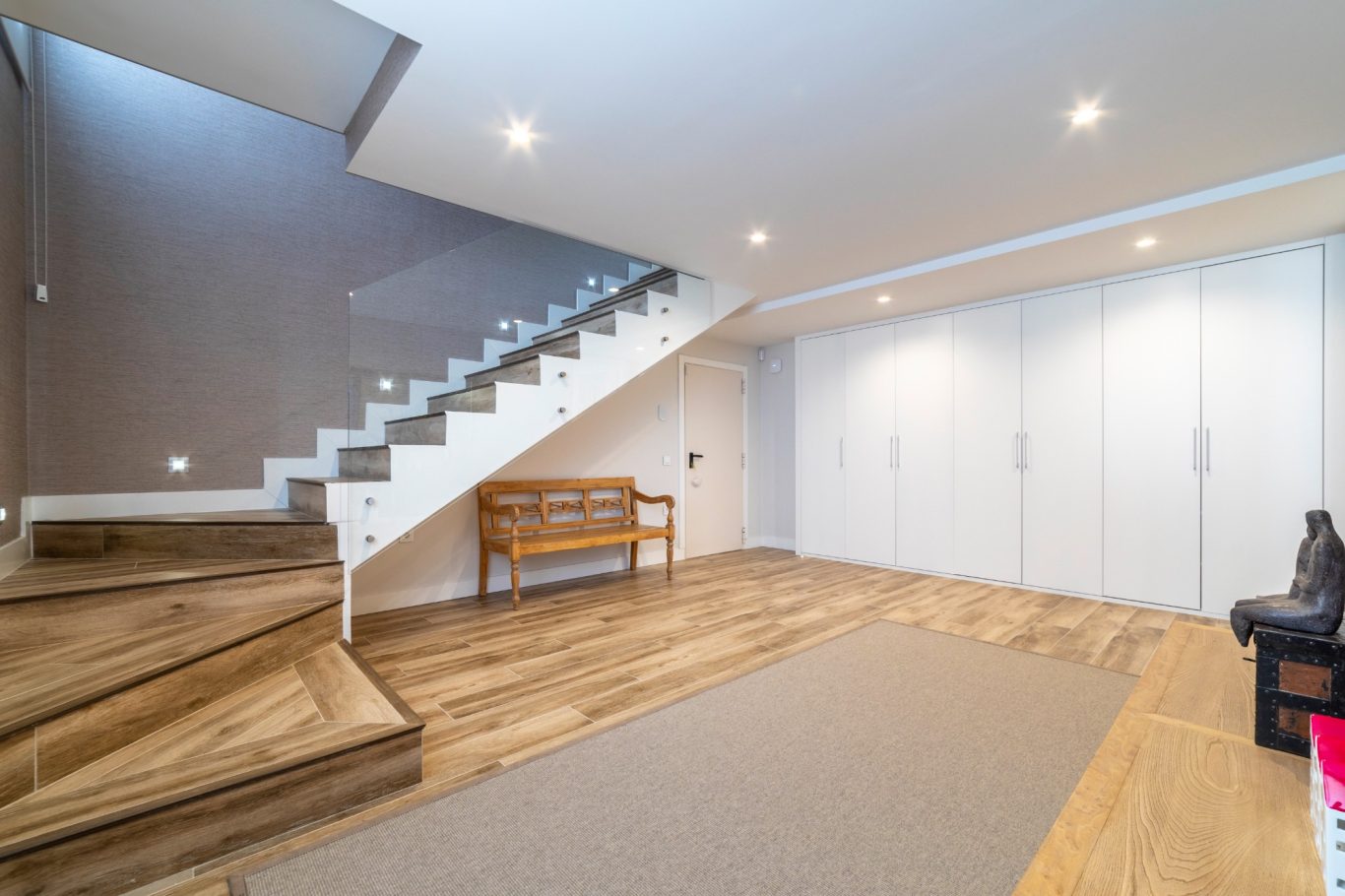 Además, el sótano polivalente te ofrece un lienzo en blanco para adaptarlo a tus necesidades: un gimnasio, una sala de cine, un despacho o cualquier cosa que puedas imaginar.