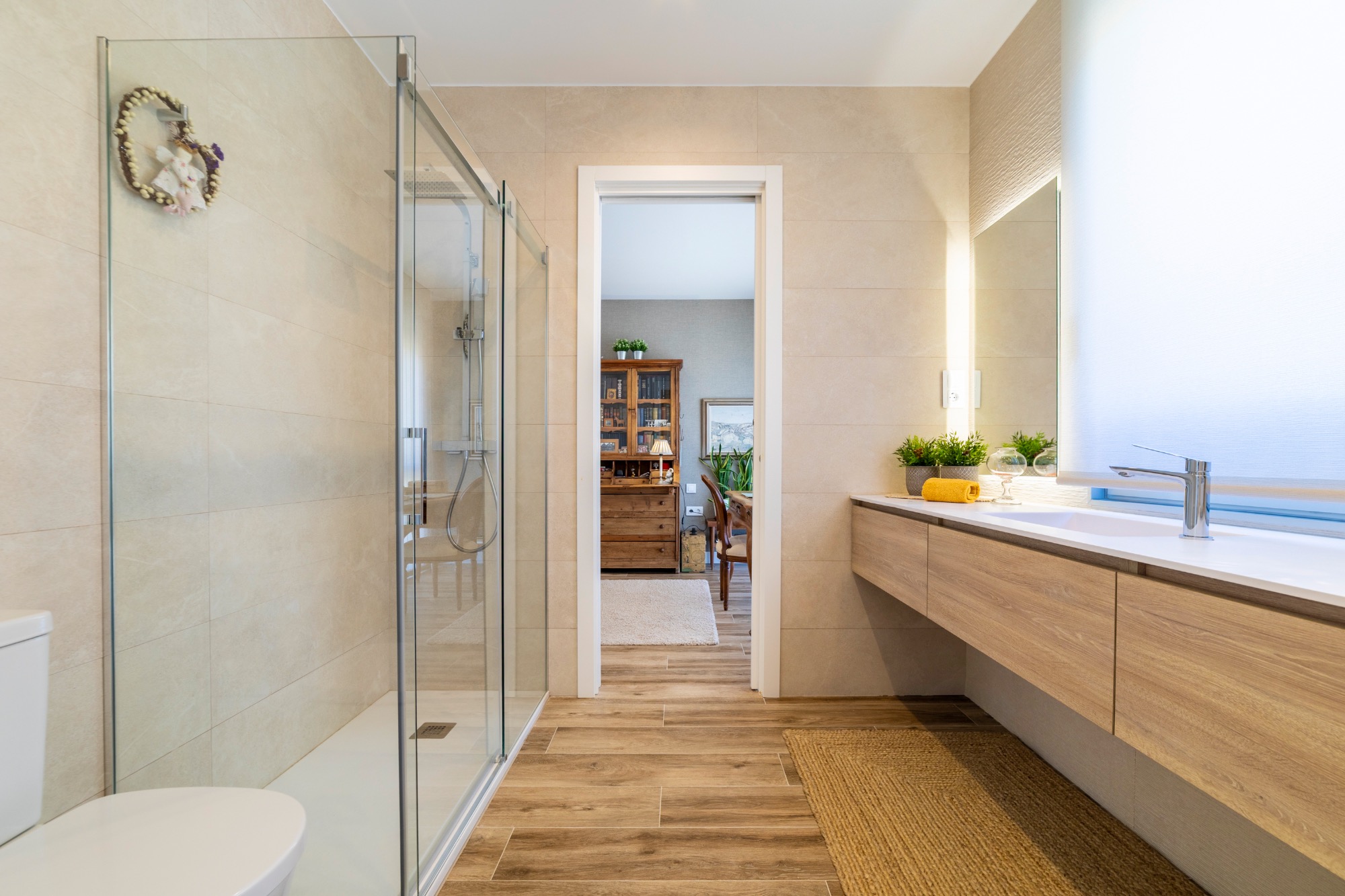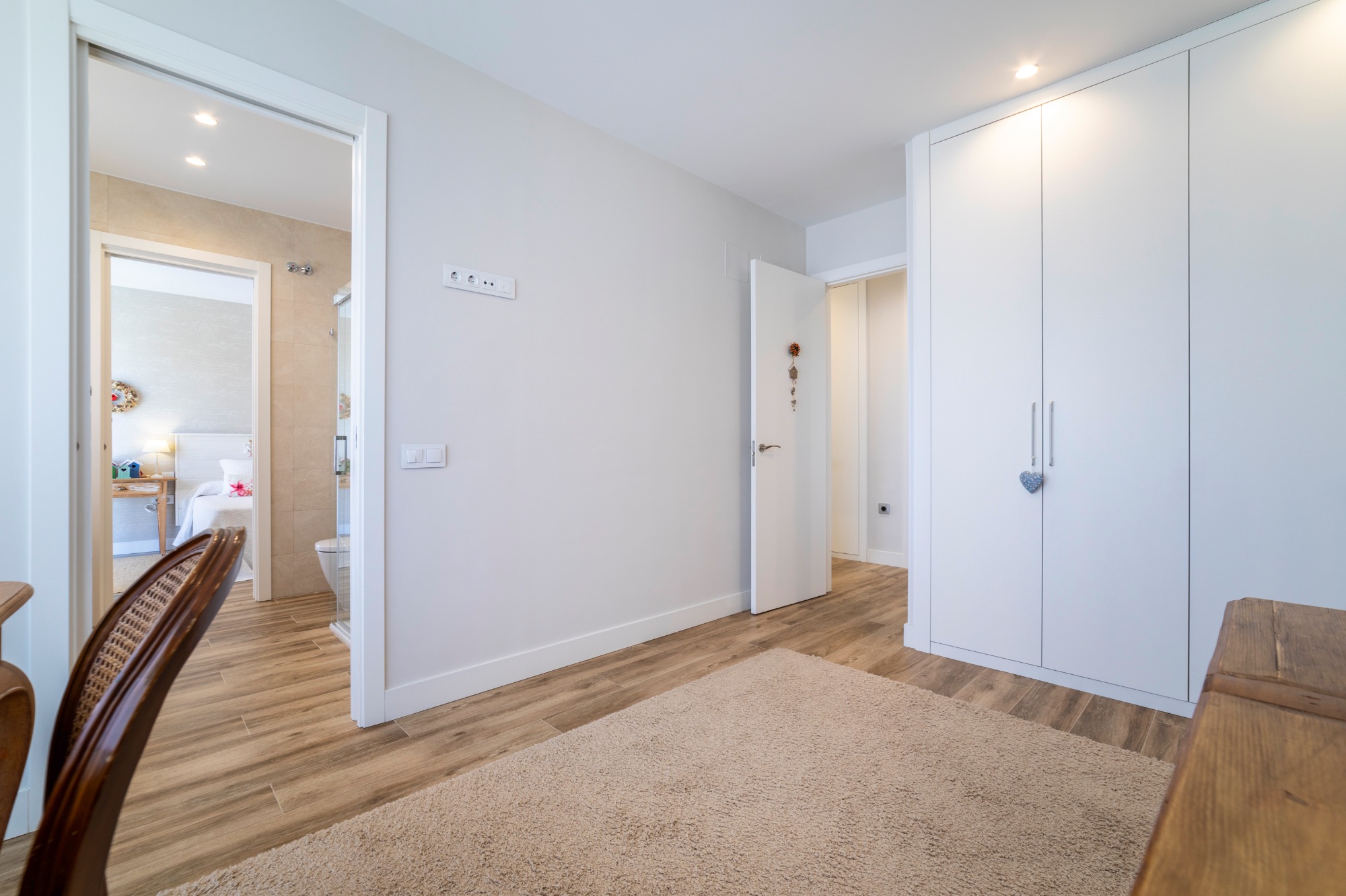 • Eficiencia de vanguardia: Olvídate de los altos costes. La climatización por suelo radiante con aerotermia y las placas solares garantizan un confort ideal durante todo el año de forma sostenible.